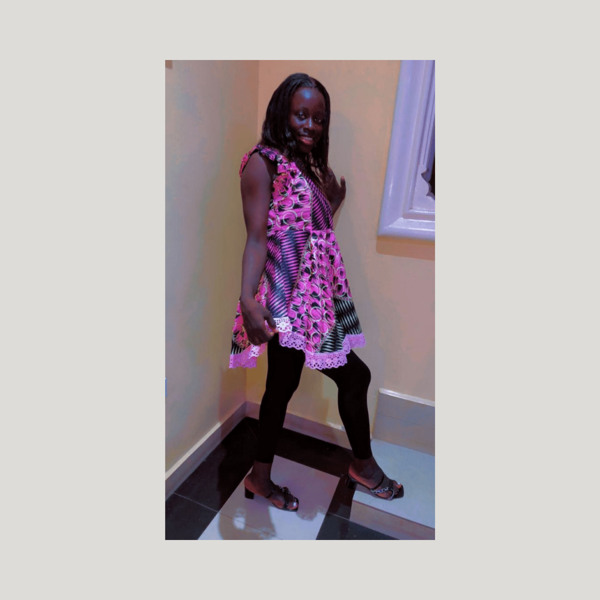 - Pink lace on hemline